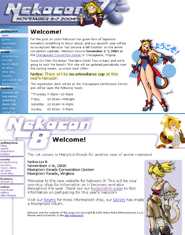 Nekocon 7 and 8 Websites (2004-2005; HTML, PHP)